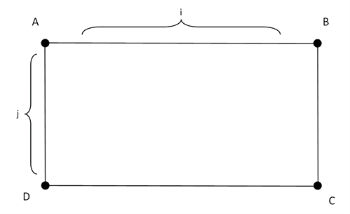 A square is defined by four corners, A, B, C and D. Between these waypoints, there are “i” positions between A and B, and “j” positions between A and D.