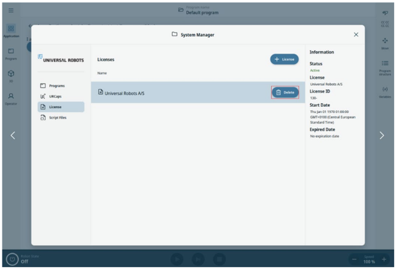 Licenses can also be removed when they are no longer required, providing greater flexibility in managing robot functionality.