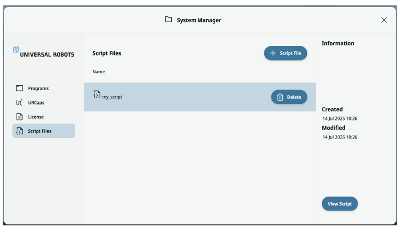 Typically, this is done automatically by PolyScope X and is relevant only when a script is sent directly to the controller either from URCap backend or a remote system.