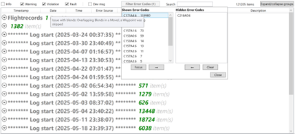 An error code summary and filtering popup has been added in the Log Reader tab which can be accessed through the new “Filter Error Codes” button. The summary shows error codes in the current view ordered by occurrences and provides an easy way to filter the list. A tool tip with the description of the error code will show on mouseover.