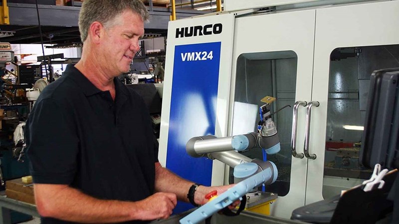 As opções resumiam-se em adicionar outra máquina CNC, ou adicionar a robótica para apoiar a usinagem autônoma. O Whippany introduziu um cobot da UR com uma pinça da parceira, Robotiq, e foi capaz de adicionar um segundo turno em sua máquina CNC existente.