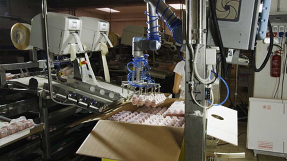 마찬가지로, 카시나 이탈리아(Cascina Italia)는 유연성과 운영 효율성을 향상시키기 위해 UR5 로봇을 사용하여 매일 수백만 개의 달걀을 처리했습니다. 코봇은 대규모 유통을 위해 큰 부피를 가진 대상의 포장을 준비하는 고된 과정으로부터 직원들을 해방시킬 뿐만 아니라, 안전 펜스가 필요 없어 생산라인에서 로봇과 직원들과 나란히 일할 수 있게 합니다. 이 회사는 필요한 포장의 종류에 따라 220개 이상의 옵션을 제공하기 위해 무게에 따라 달걀을 네 가지 크기로 분류합니다.