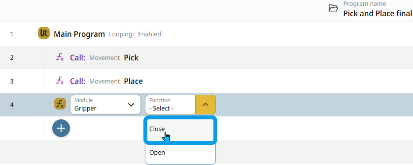 Call Gripper module and Close function |