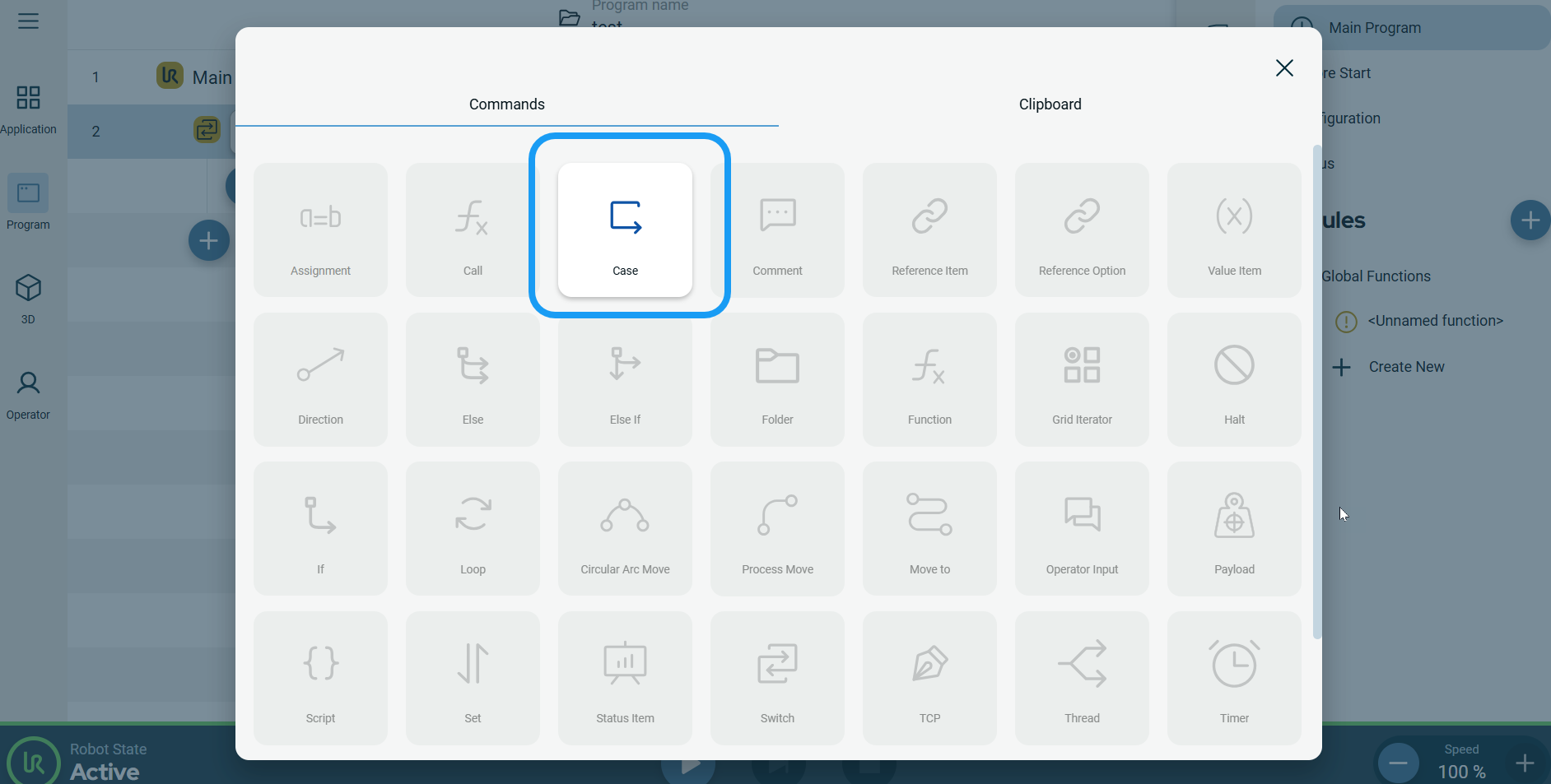The Case command enables you to point to a function to be executed, depending on an input. It can only be used with the Switch command. It is usually referred to as "Switch-Case" as they always go together.