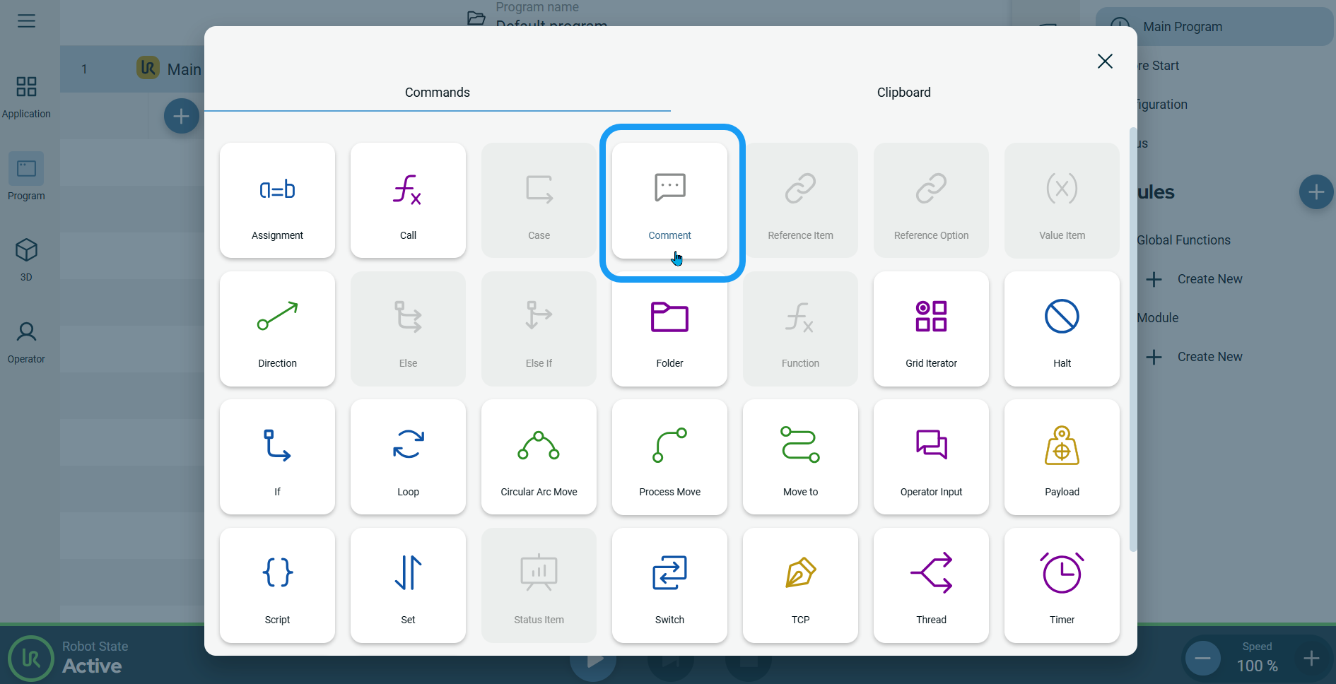 The Comment command allows you to add text descriptions into your program and so enables allows you to keep track of decisions you make while you create or update your robot program.