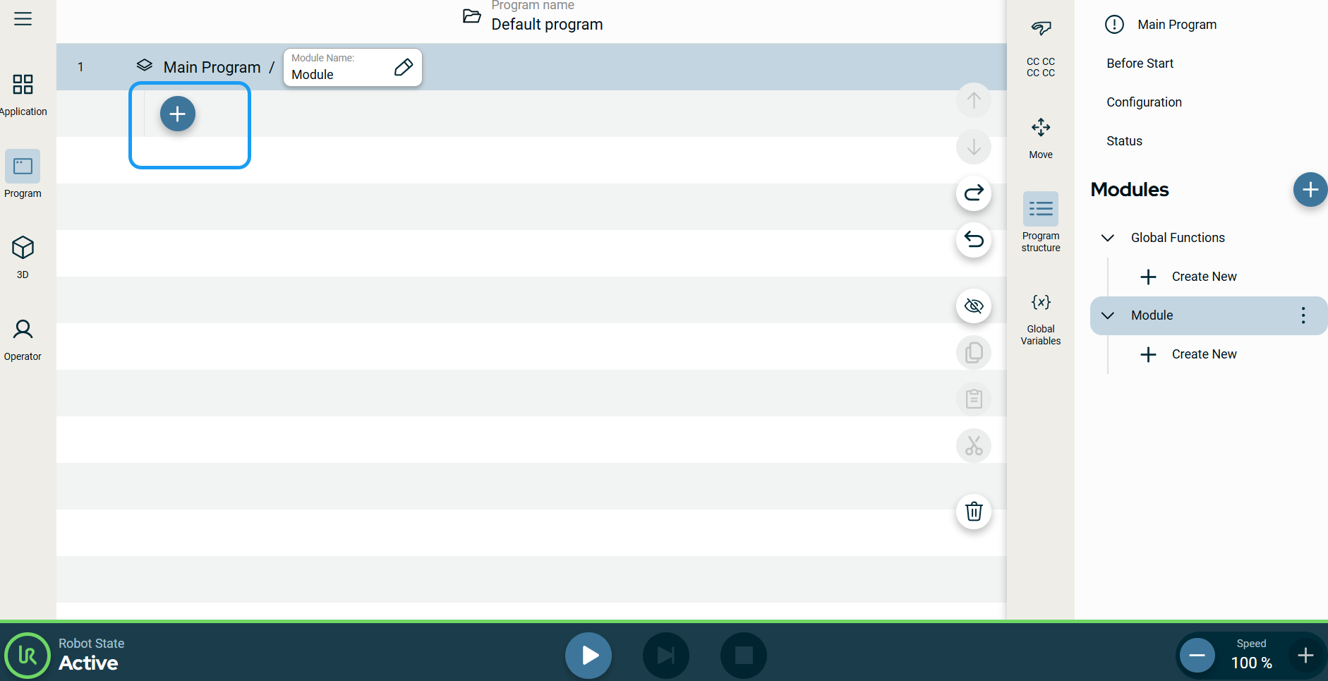 The Function command allows you to perform a specialized operation, like performing calculation, moving the robot, and other similar movements. The function will not be executed until the call command. It is only insertable inside a module or from the Global Functions.