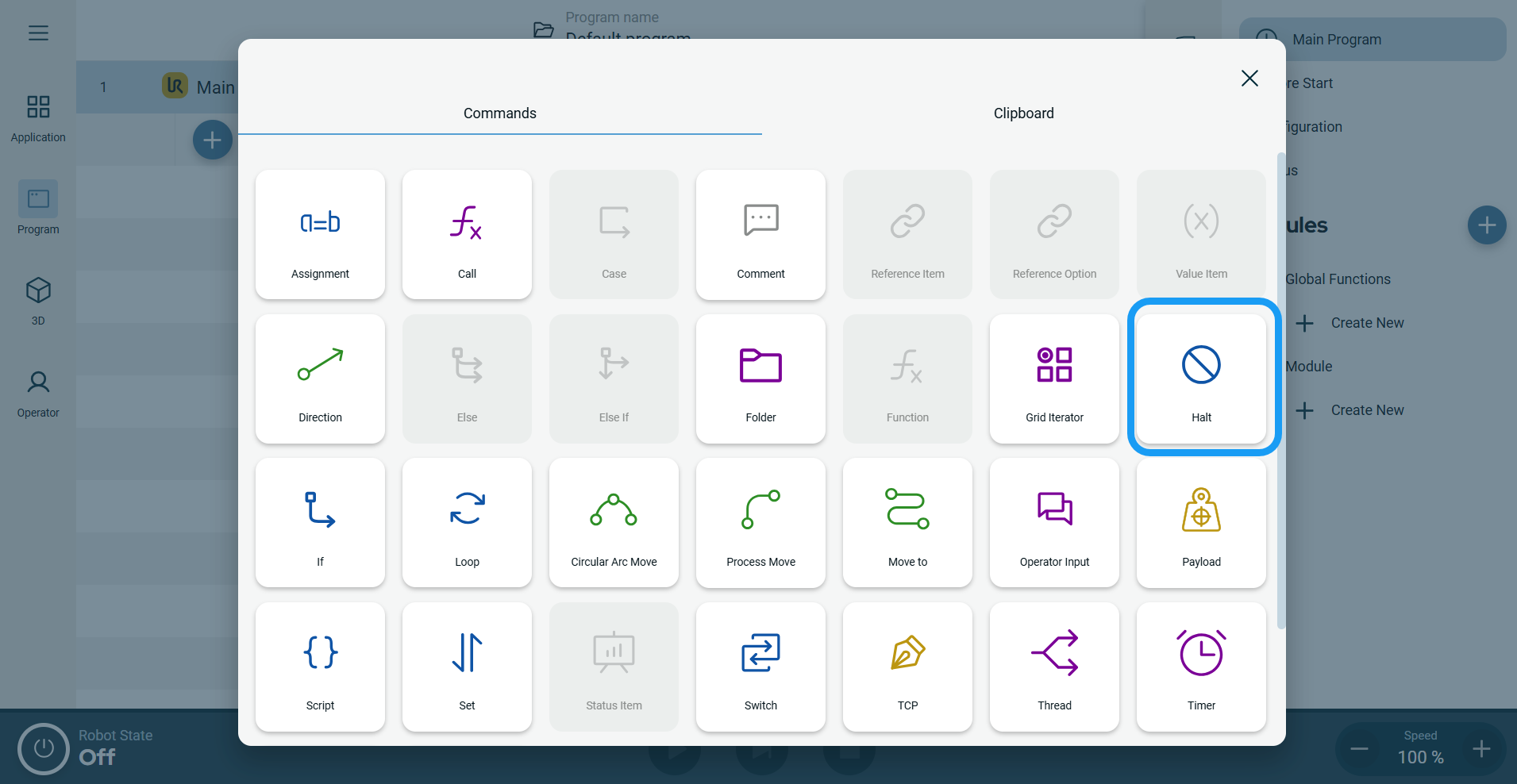 The Halt command allows you to stop the robot at that location.