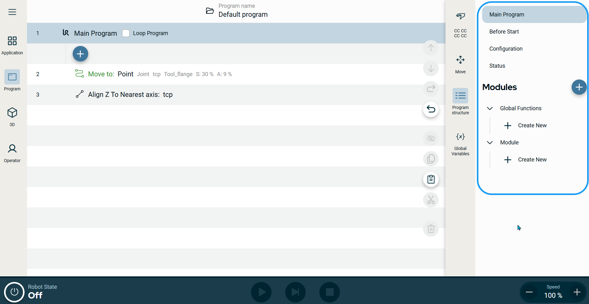 The Sidebar contains Safety Checksum, Move, Program structure, and Global variables.