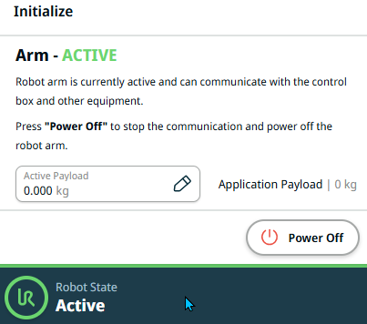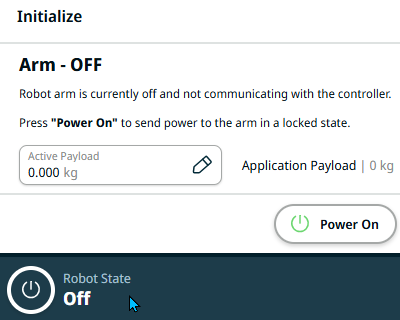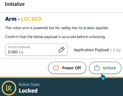 Starting the robot arm disengages the braking system, allowing you to start moving the robot arm and to start using PolyScope X.