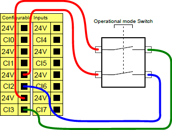 Using a Three-Position Enabling device requires the use of an Operational Mode switch. The illustration below shows how to connect an Operational Mode switch.