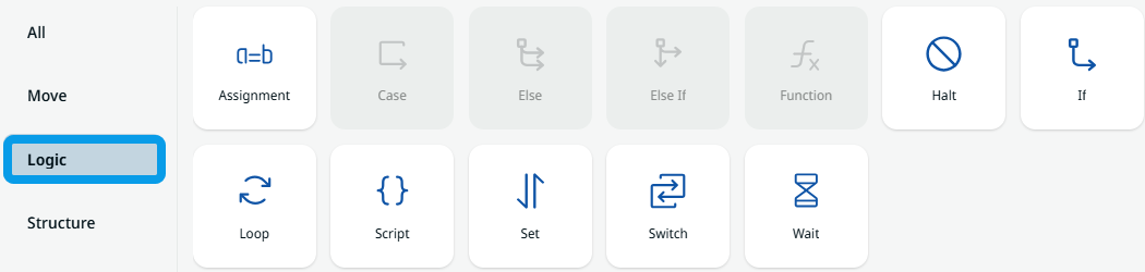 Tap Logic, and the twelve logic command nodes are shown, including the inactive ones.