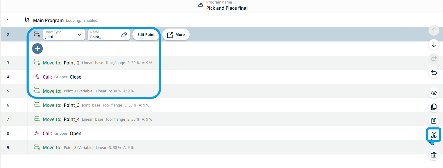 5.7. Tap the Move to: Point_1 (Variable) command.