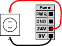 It is possible to power the digital I/O from an internal 24V power supply or from an external power source by configuring the terminal block called Power. This block consists of four terminals. The upper two (PWR and GND) are 24V and ground from the internal 24V supply. The lower two terminals (24V and 0V) in the block are the 24V input to supply the I/O. The default configuration uses the internal power supply.