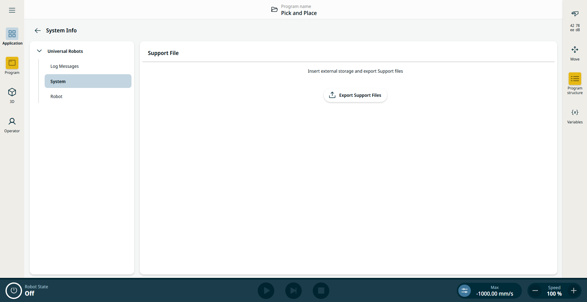 Do not revert your robot software using older update packages if you have installed 5.8 or above software version. If, for any reason, you need to downgrade below PolyScope version 5.8, you can do so by restoring your old system backup (system backup was implemented from Polyscope version 5.5 ahead).