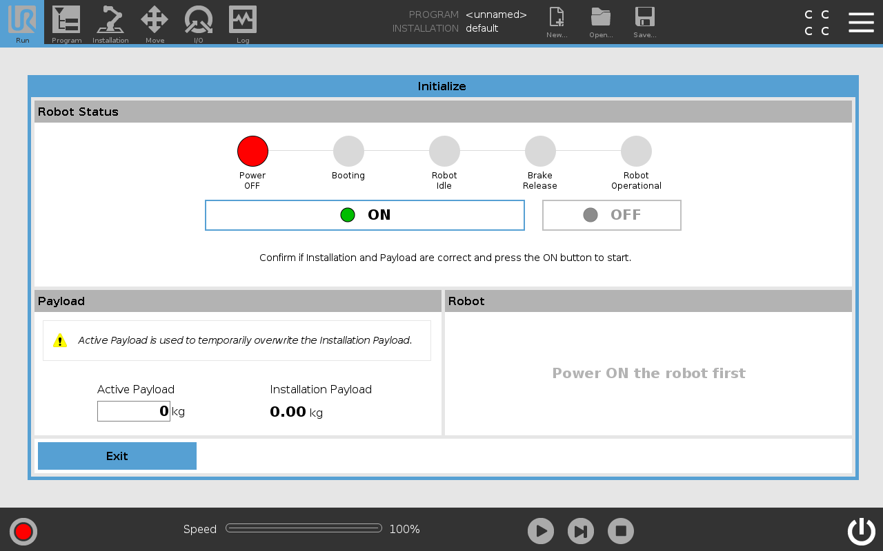 When a joint is replaced, it needs to be verified by the controller to be assigned the correct ID. The screen below appear automatically when the robot arm is powered on for the first time. Follow the steps.