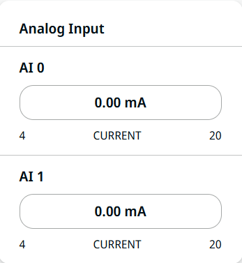 Analog input has two fields for AI 0 and AI 1. It can be set to 4–20 mA. These settings are persistent over restarts of the robot controller and saved in the installation.