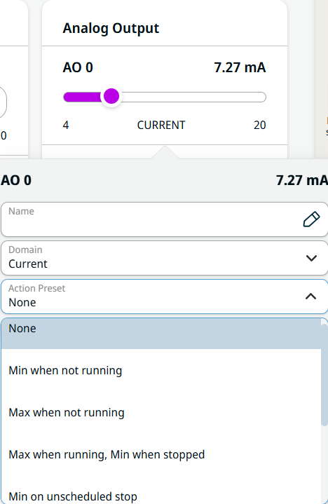 By selecting the last two action preset, the Min/Max value of signals will be changed when power is OFF/ON.