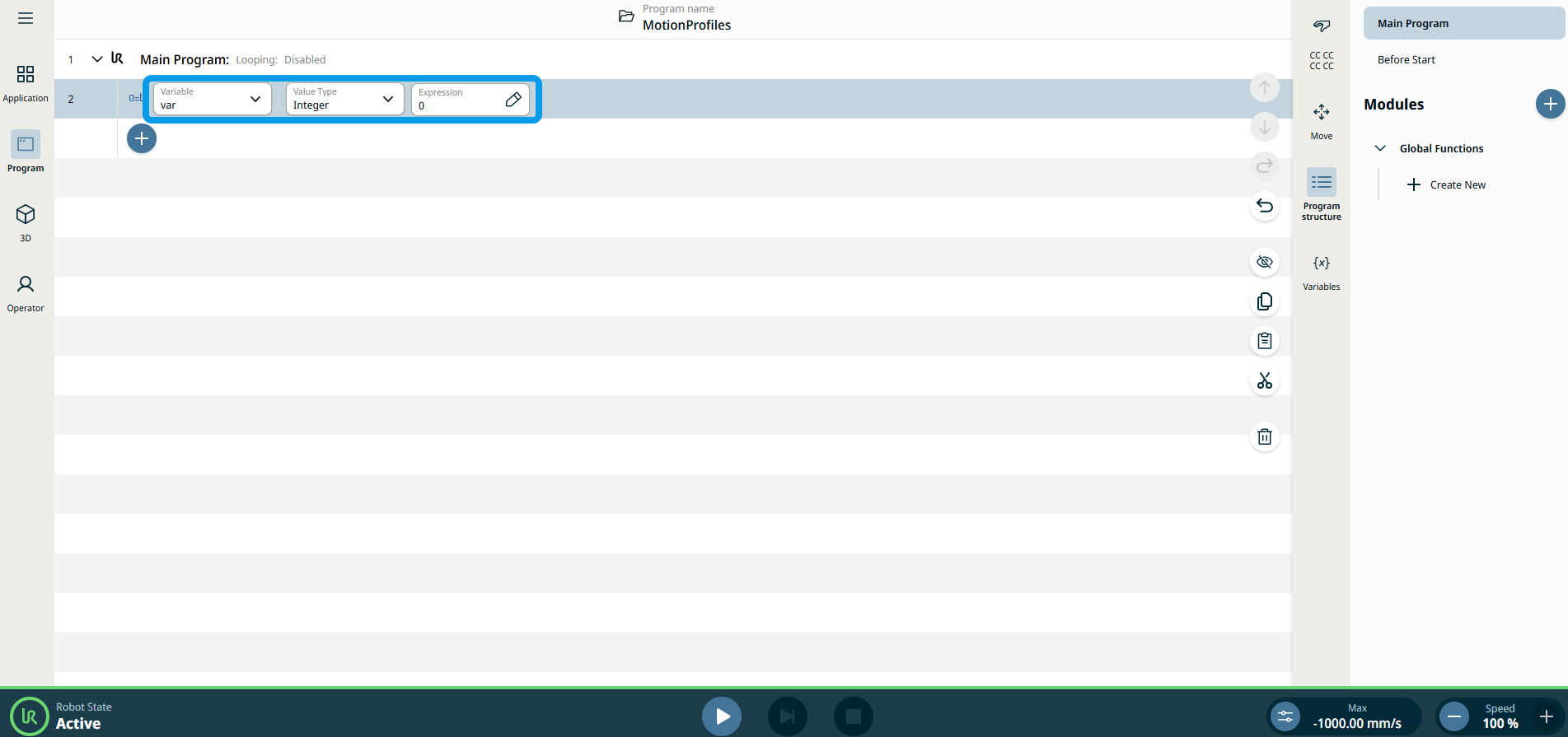 Tap the Expression field, select your variables and expression, and Confirm. The Expression is the value to assign the variable. See Expression Editor.