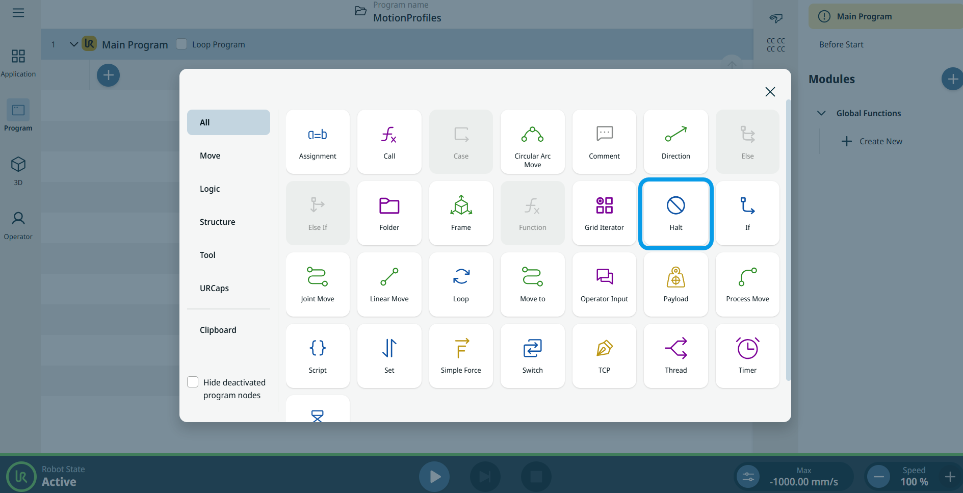 The Halt command allows you to stop the robot at that location.