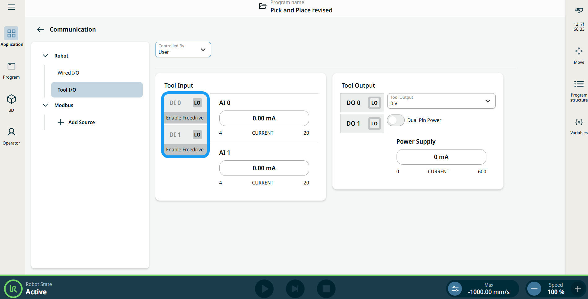| Freedrive Enabled Input |