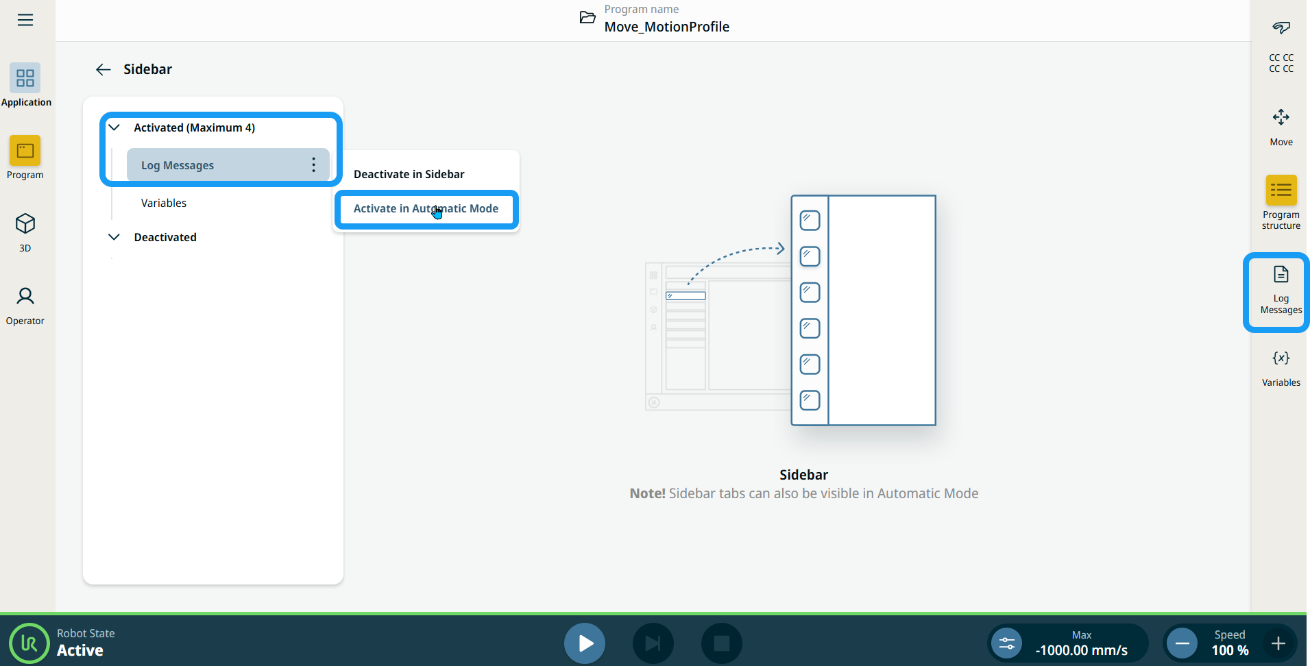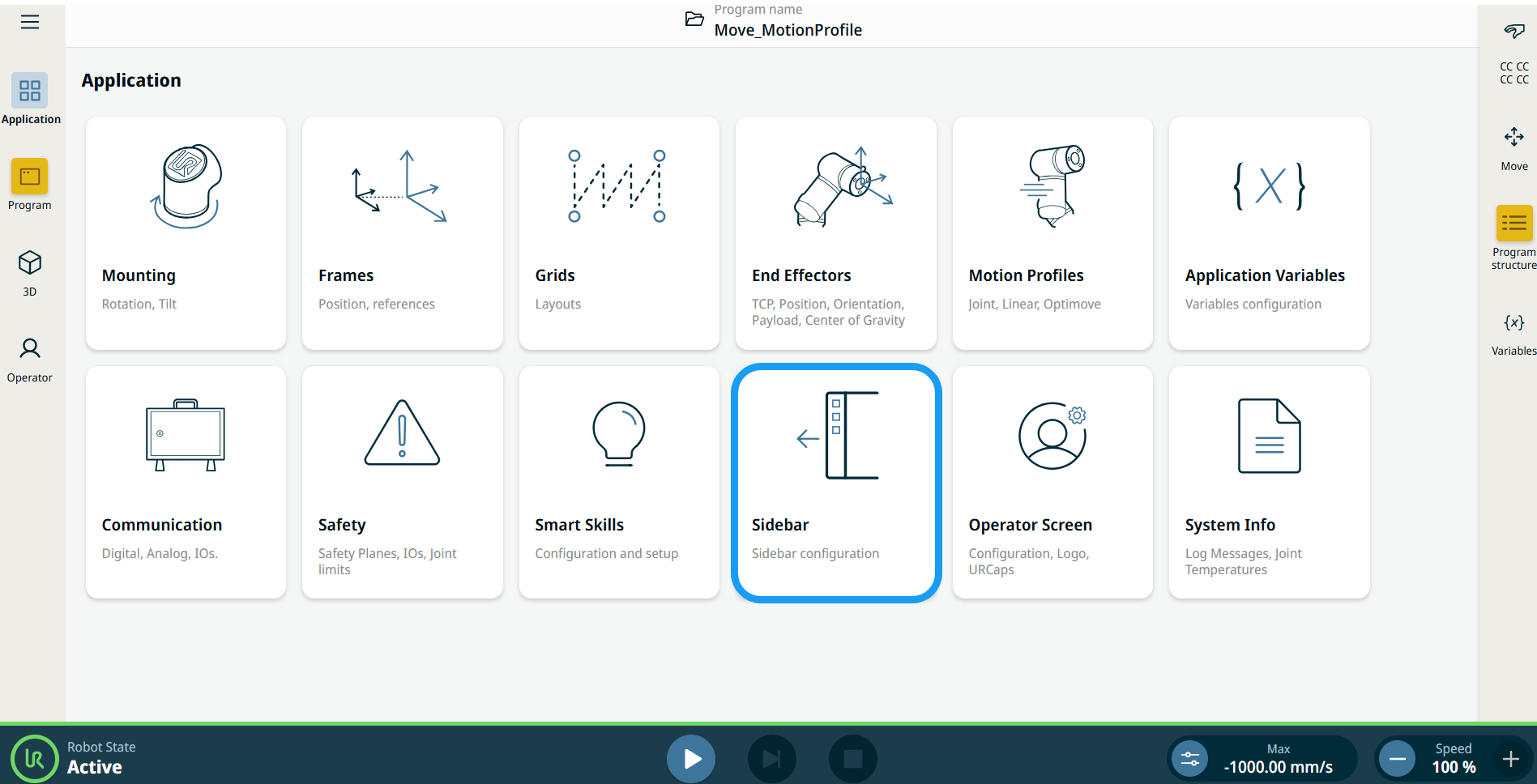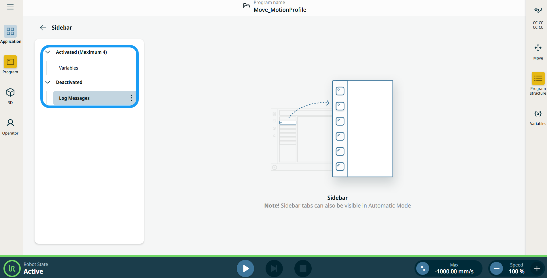 Sidebar in Application Tab