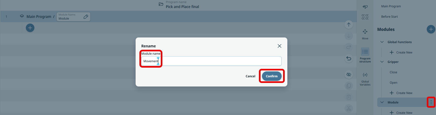 A movement module enables you to reuse Move To command nodes to pick and place an object from one place to another using a gripper.