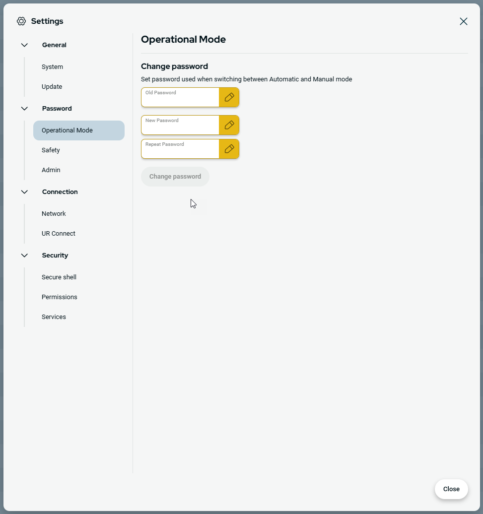 The default password for operational mode: operator If you forget your password, it cannot be replaced or recovered. You will have to reinstall the software. You must use the default password, when you change the password for the first time.