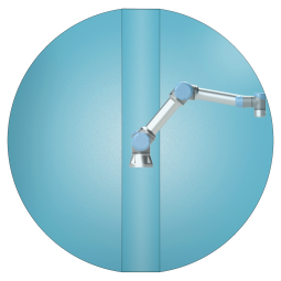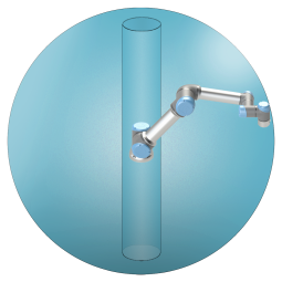 The workspace is the range of the fully extended robot arm, horizontally and vertically. The operating space is the location where the robot is expected to function. Disregard for the robot workspace and operating space can result in the damage to property. It is important to consider the cylindrical volume directly above and directly below the robot base when choosing location to mount the robot. Moving the tool close to the cylindrical volume should be avoided because it causes the joints to move fast even when the tool is moving slowly. This can cause the robot to work inefficiently and can make it difficult to conduct a risk assessment. Moving the tool close to the cylindrical volume can cause the joints to move too fast, leading to loss of functionality and damage to property.