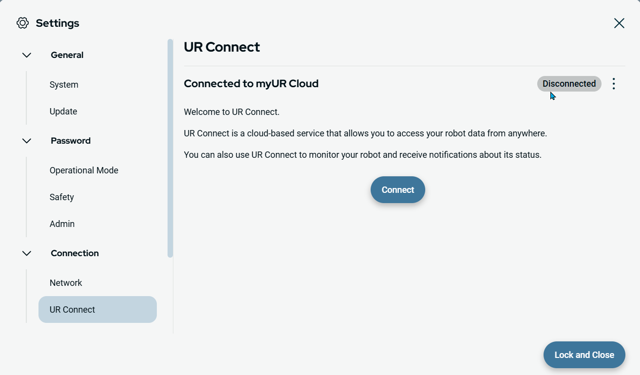 The UR Connect menu is used together with the UR Connectivity Kit.