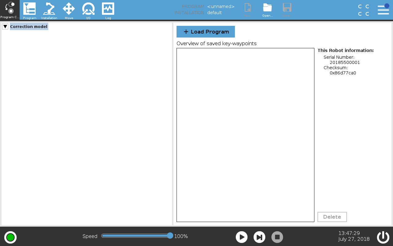 Select the root node of the Correction Model tree and tap Load Program.