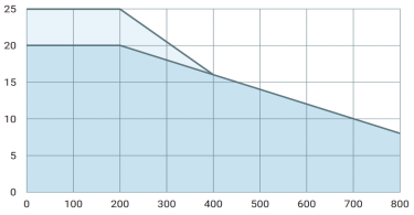 Increasing the maximum payload capacity can cause the robot to move at reduced speeds and lower acceleration. The higher load on the joints can limit some motions inside the working range of the robot. The robot software automatically ensures the mechanical limits of the robot are not exceeded. Using the expanded payload range does not void your robot warranty for this robot. |
