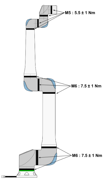 | 4 | M6 | Hex key 5 | 7.5 Nm | Elbow Joint |