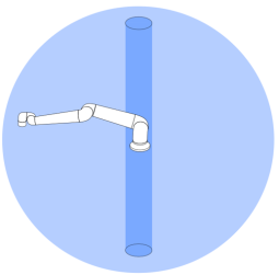 Moving the tool close to the cylindrical volume can cause the joints to move too fast, leading to loss of functionality and damage to property.