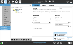 When the robot is in Manual Mode you can allow a program to start from a selected node or you can start the entire program from the beginning.