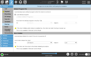 A default program is loaded after the Control Box is powered up. Furthermore, the default program is auto loaded when the Run Program screen (see Run Tab) is entered and no program is loaded.