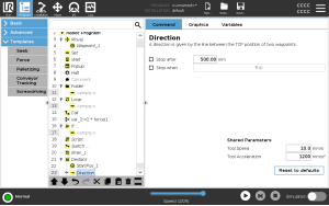 You must also define the condition for when the next stack position is reached, and a special program sequence that is performed at each stack position. Speed and accelerations need to be given for the movement involved in the stack operation.