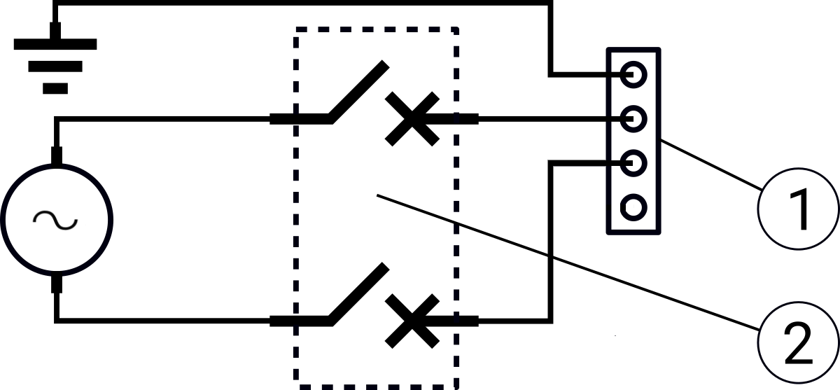 Use a double pole circuit breaker to protect the power input connector, as it can also be used as a switch. If a fuse is used, then a two-pole switch must be installed between the fuse and power input connector.