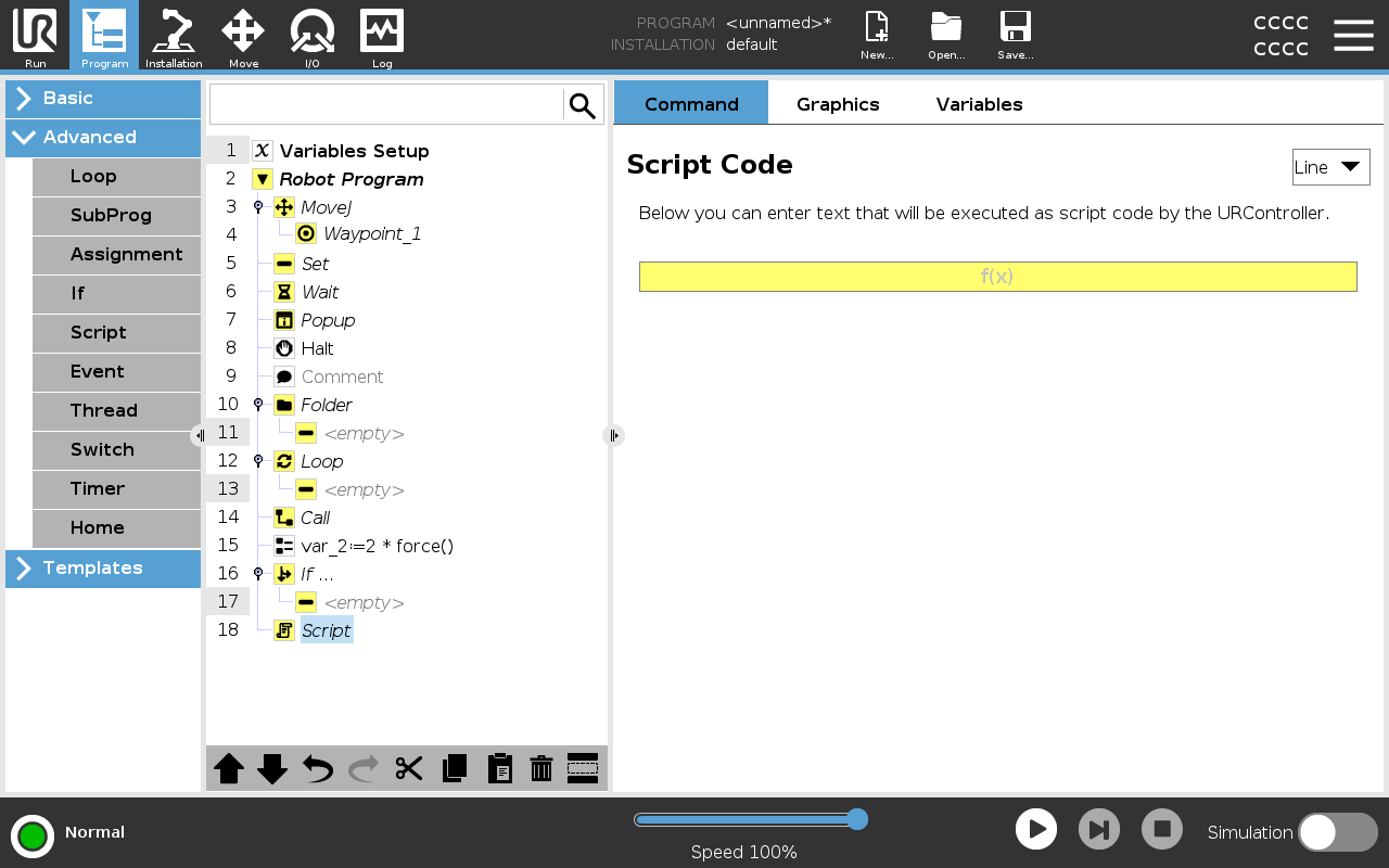 You can find instructions for writing URscript in the Script Manual on the support website (http://www.universal-robots.com/support). Functions and variables declared in a URscript file are available for use througout the program in the PolyScope.