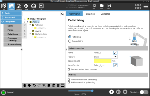 You can use the palletizing template to quickly create a palletizing program. The same palletizing program is also used to create a depalletizing program.