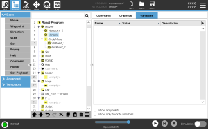 You can check the Show Waypoints box to display the waypoint variables in the running program. In the Variables pane, you can also use the following options:
