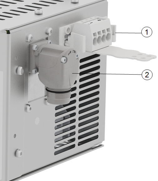 Use a double pole circuit breaker to protect the power input connector, as it can also be used as a switch. If a fuse is used, then a two-pole switch must be installed between the fuse and power input connector. |