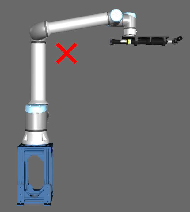 Robot poses with the arm fully extended (tool flange close to the outer workspace limit), or with one or more joints close to their maximum torque values should be avoided. Ideally the robot can use as much of the available torque in every joint as possible in counteracting the screwdriving torque, rather than maintaining the robot position.