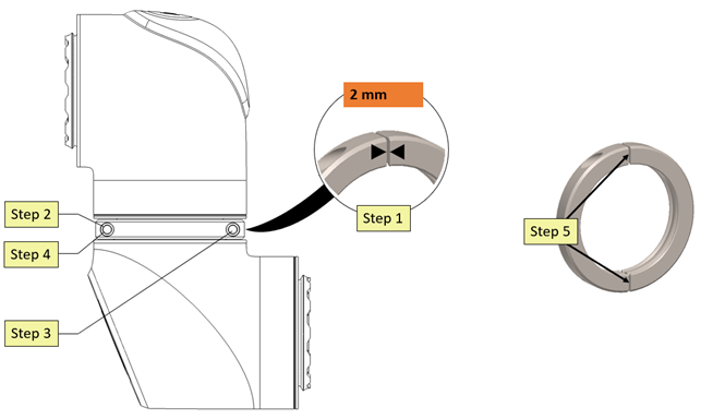 You can now reassemble the clamp connection with the new joint in reverse of the disassembly. However, be aware of the following before you start reassembling the clamp connection. Failure to replace the black flat ring can lower the IP classification and cause damage to property and/or equipment.