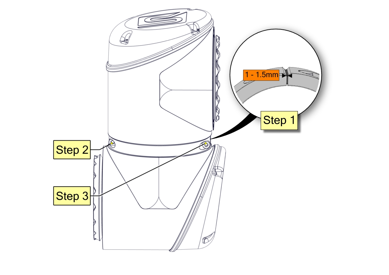 Replace the foam seal on the clamps if damaged to maintain the IP classification. Replace the wear rings if extensive wear or damage is shown. The dots must be aligned otherwise the connection cannot be made.