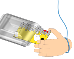 ![]() Figure 1.3. ESD wristband connection to the system ground Hold the ESD-sensitive part by its edges. Do not touch its pins or hold directly on any exposed prints.
