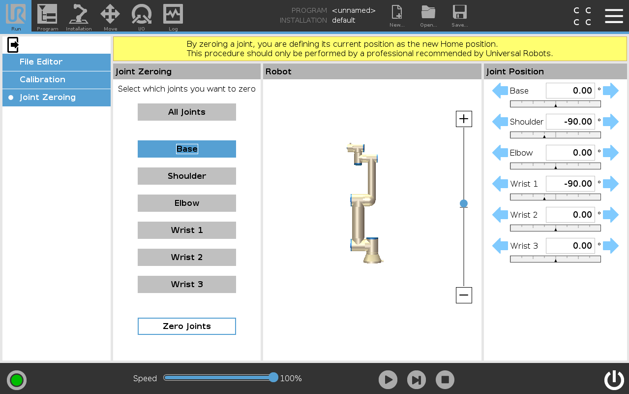When a joint has been replaced and verified, it may be necessary to zero the joint so that it is aligned with the rest of the robot arm. There are two ways this can be done.