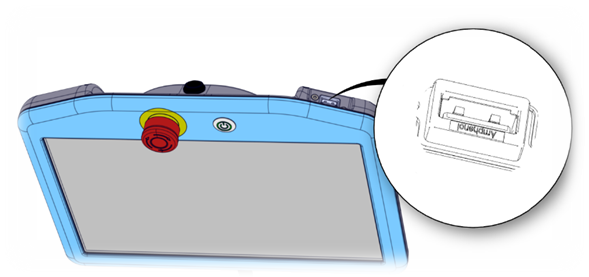 In the Control Box bracket, a Mini Display Port is available. When a monitor is connected, it displays the same content as the Teach Pendant. Both can be connected at the same time. It may be required to restart the Control Box for it to work.