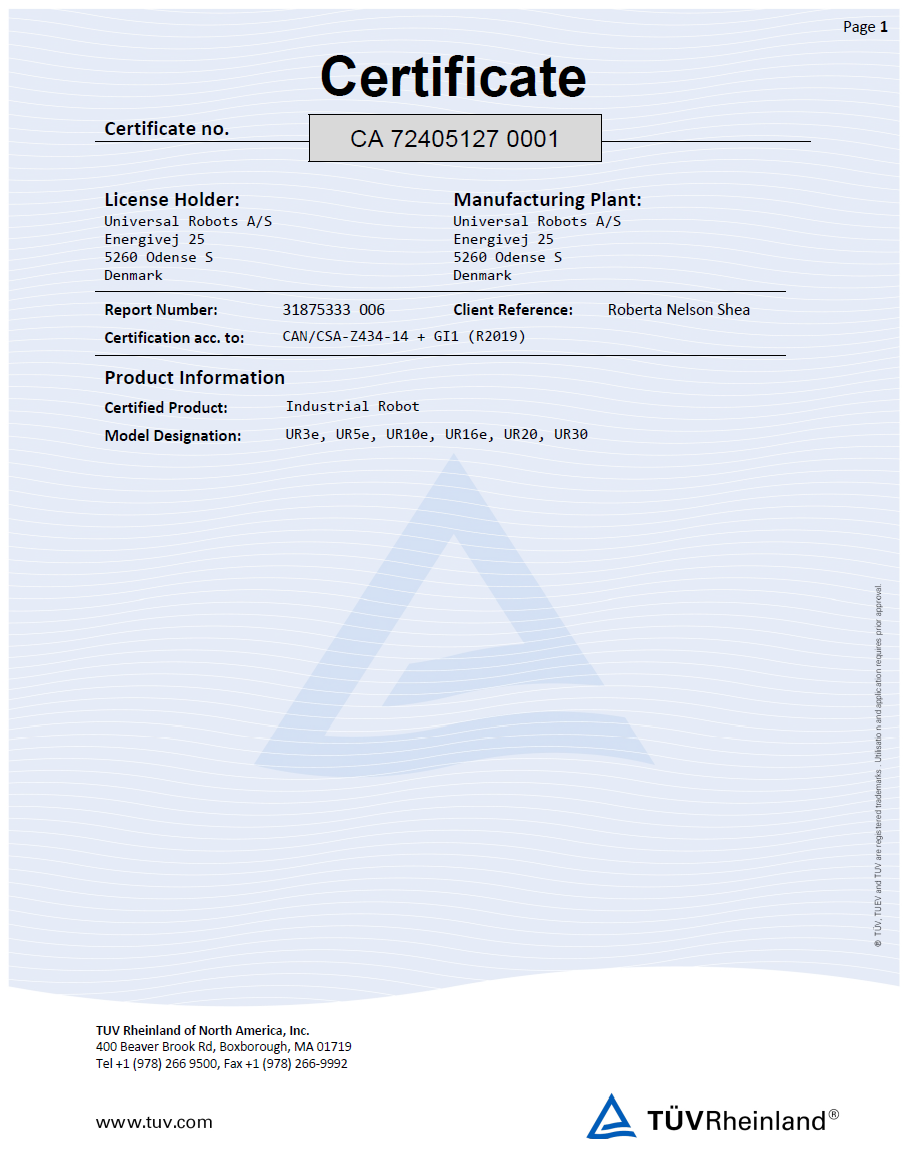 | TÜV Rheinland North America UL1740 |