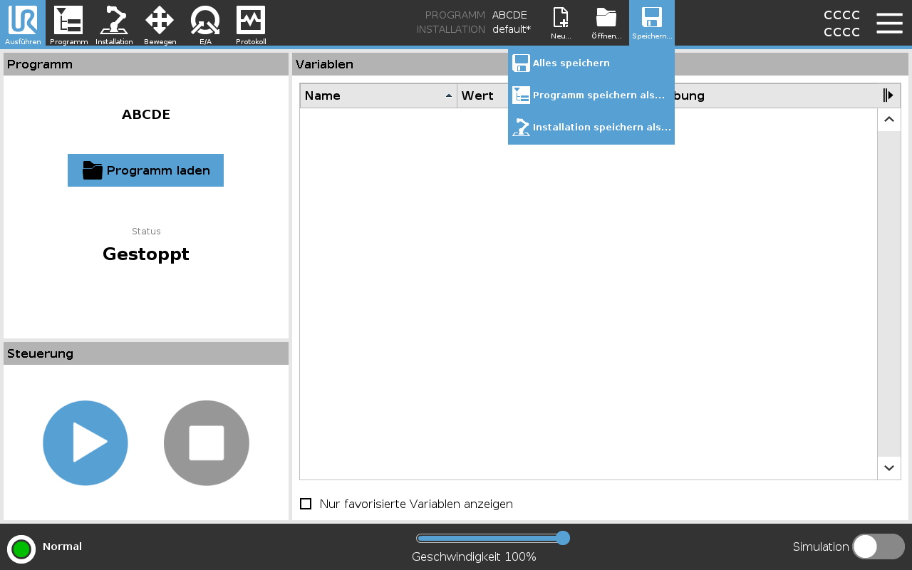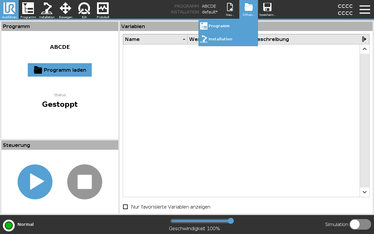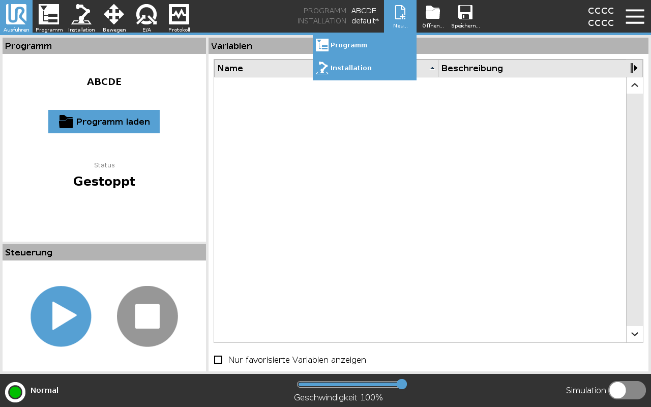 Sie können mehrere Installationsdateien für einen Roboter haben. Die erstellten Programme laden und verwenden die aktive Installation automatisch.