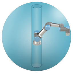 El espacio de trabajo es el rango del brazo robótico completamente extendido, horizontal y verticalmente. El espacio operativo es la ubicación donde se espera que funcione el robot. Ignorar el espacio de trabajo y espacio operativo del robot puede provocar daños en la propiedad. Al elegir el lugar de montaje del robot, es importante tener en cuenta el volumen cilíndrico justo encima y debajo de la base del robot. Se debe evitar mover la herramienta cerca del volumen cilíndrico porque hace que las articulaciones se muevan rápidamente incluso cuando la herramienta se mueve lentamente. Esto puede hacer que el robot funcione de manera ineficiente y puede dificultar la realización de una evaluación de riesgos. Al acercar la herramienta al volumen cilíndrico, es posible que las articulaciones se muevan demasiado rápido, lo que podría causar una pérdida de funcionalidad y daños materiales.